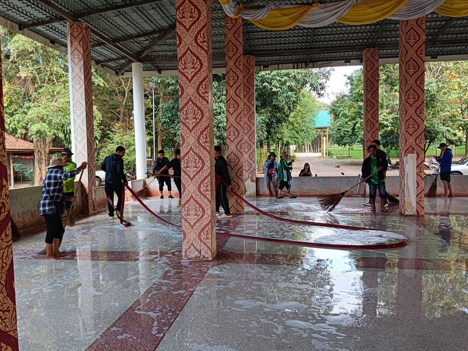 องค์การบริหารส่วนตำบลไทยเจริญ ร่วมกับผู้นำชุมชน และประชาชนในพื้นที่ตำบลไทยเจริญ ร่วมกันทำความสะอาดบริเวณศาลาวัดและพื้นที่ภายในวัด เพื่อเตรียมความพร้อมในการจัดพิ..