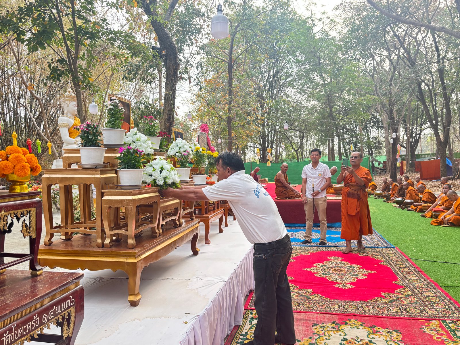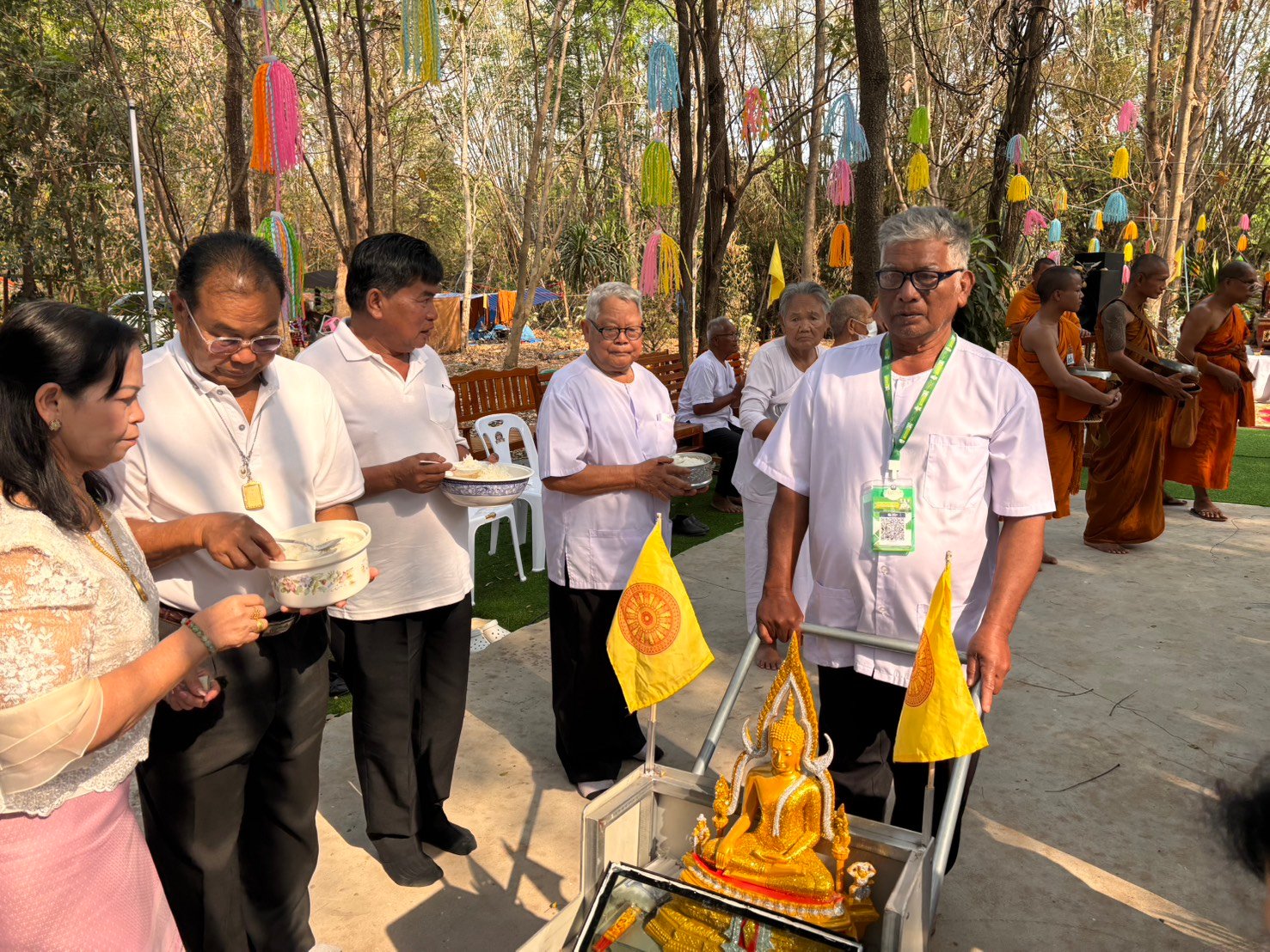 ได้เข้าร่วมพิธีทำบุญตักบาตรพระภิกษุ–สามเณร ที่เข้าปริวาสกรรม ประจำปี ร่วมกับกำนัน ผู้ใหญ่บ้าน และประชาชนในพื้นที่ โดยมี นายสุย สิริวังทอง เป็นประธานในพิธี ณ วัดไตรสิริมงคล (วัดซับตะคร้อ) ตำบลไทยเจริญ อำเภอหนองบุญมาก จังหวัดนครราชสีมา